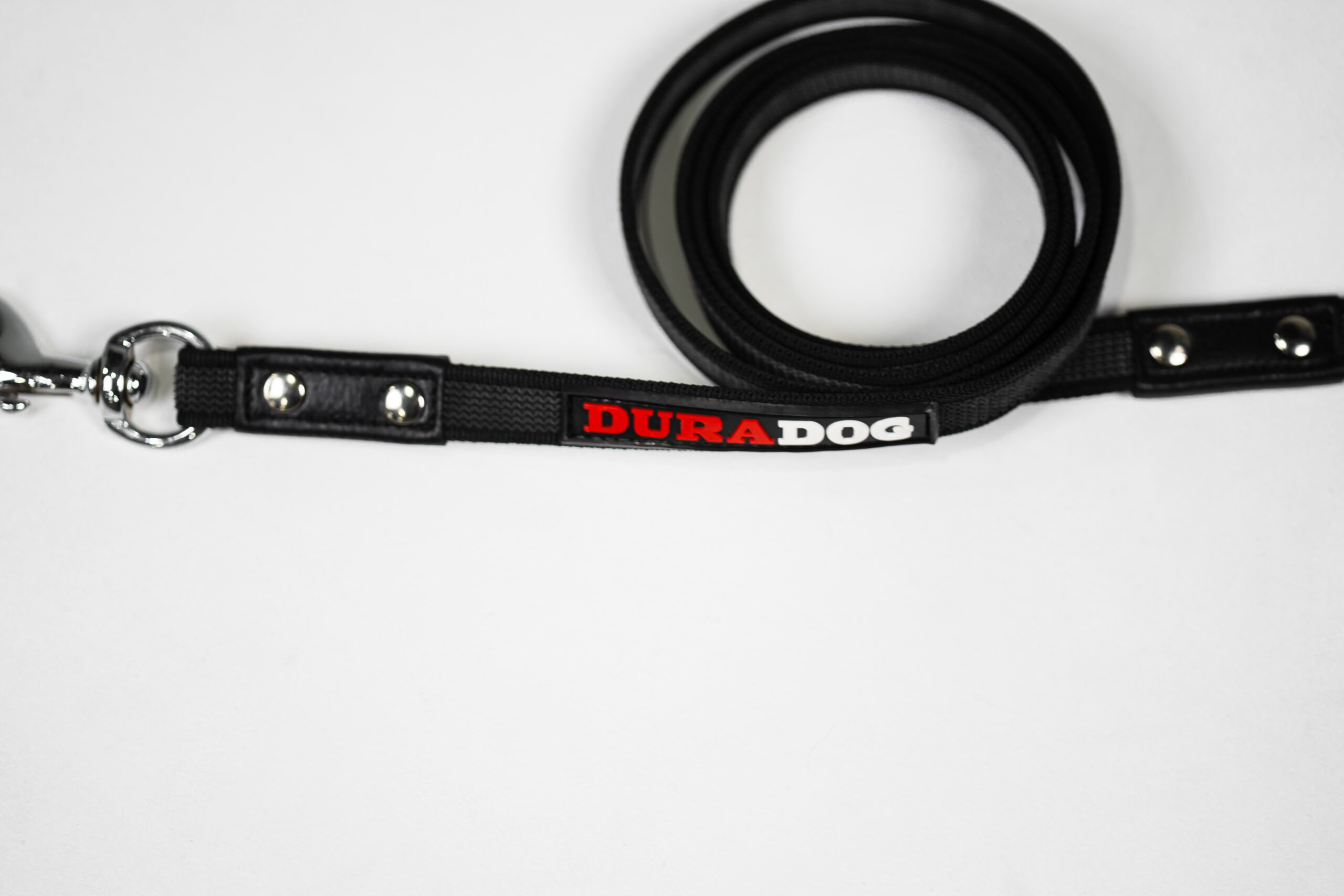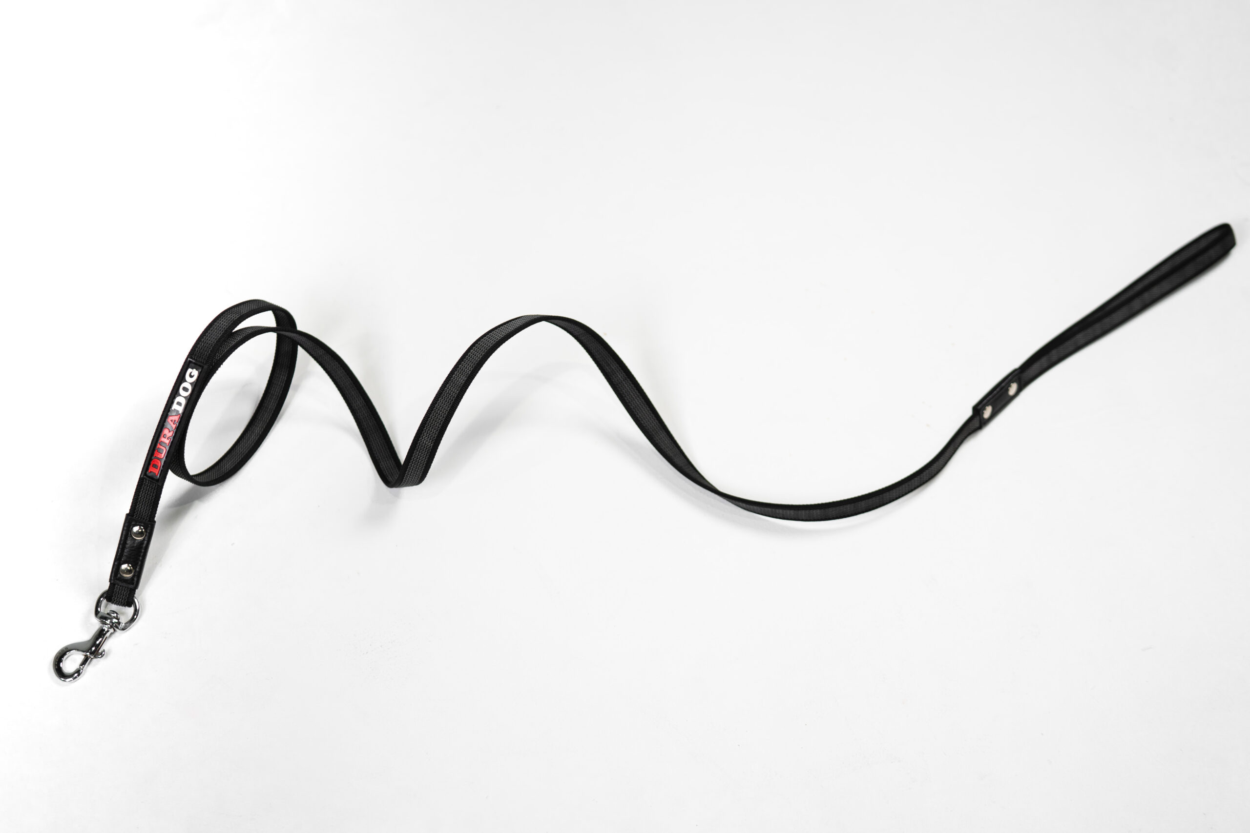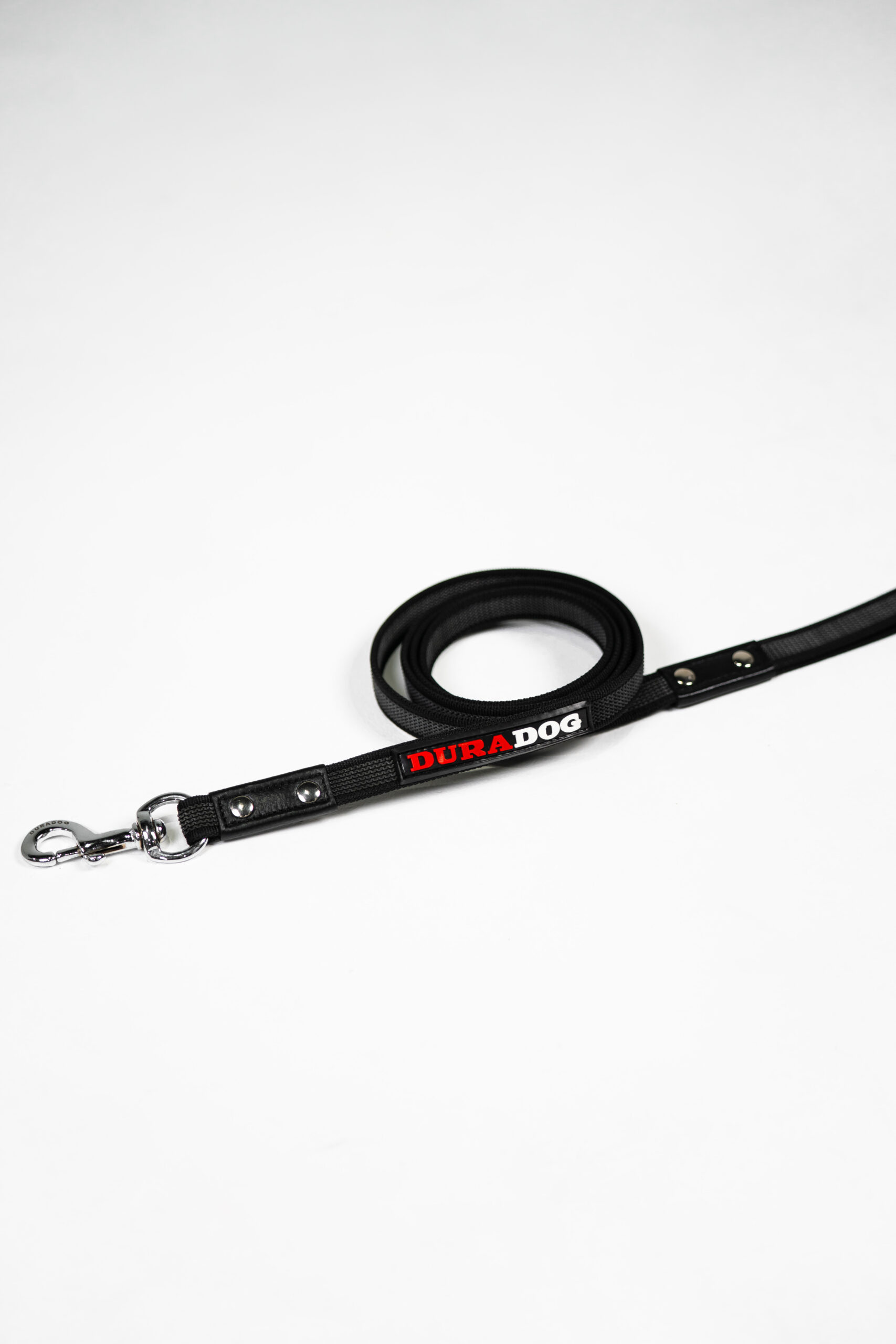 Black nylon with grey rubber this is the perfect dog training leash. Suitable for all sized dogs this leash is lightweight yet strong in all the right places. Stylish DuraDog design with DuraDog logo. Stainless steel lightweight clip with stainless steel rivets to reinforce already great stitching. Refreshing grip leash that’s made to last. Available In 2 sizes 120cm and 180cm.