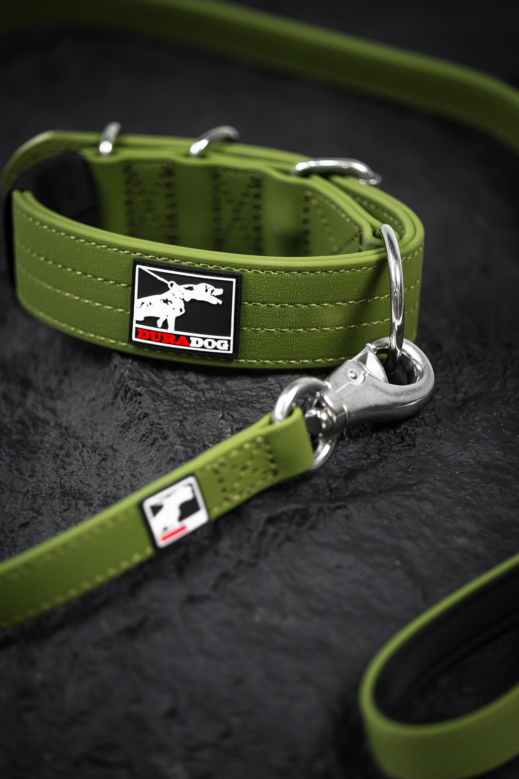 The new DuraDog waterproof collar is amongst the toughest dog collars ever made. Made to partner the new waterproof leash In military green. Possibly the most handsome waterproof dog collar on the market. Durable, trustworthy this collar will turn up day after day without the smell of traditional nylon collars.