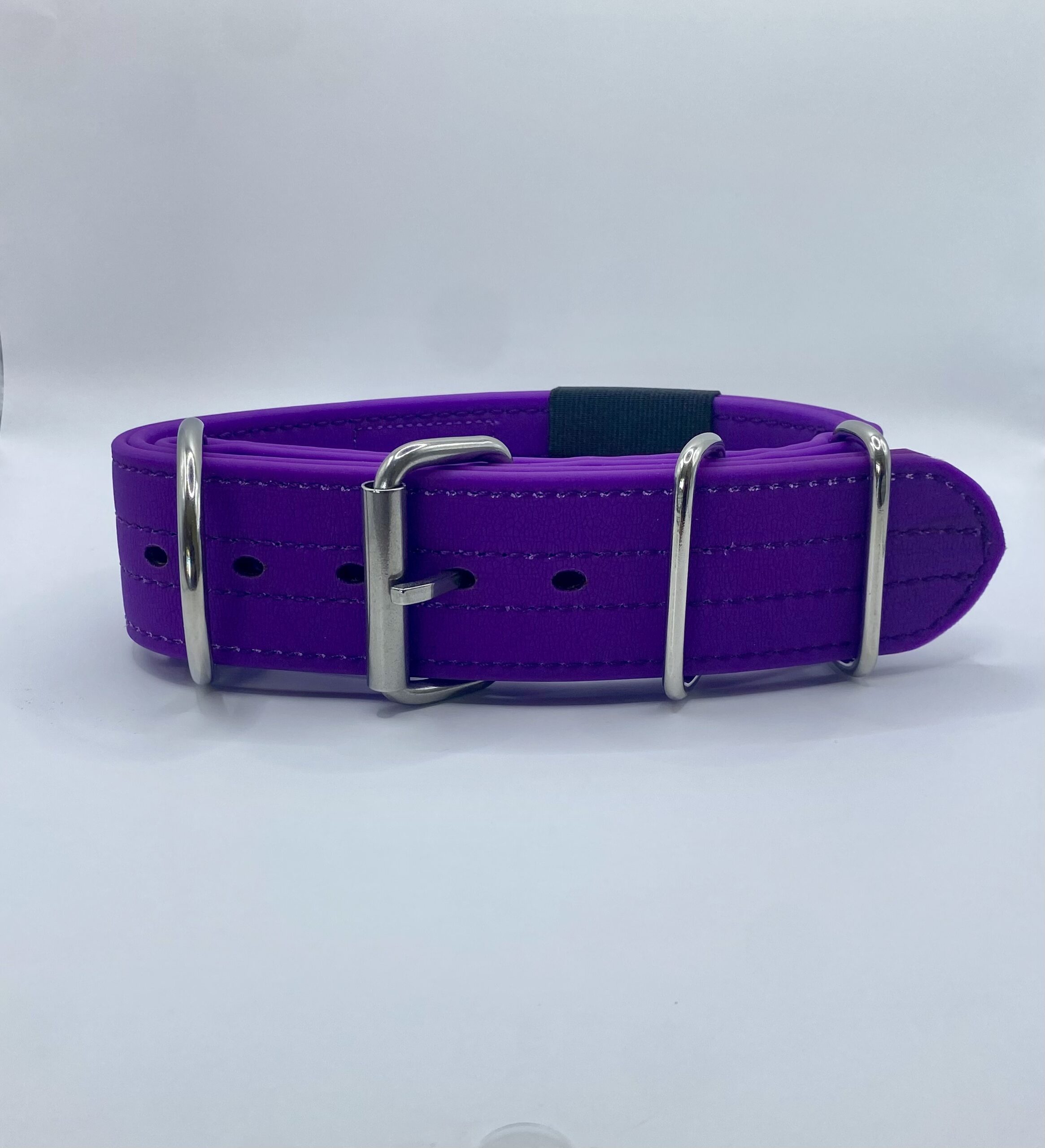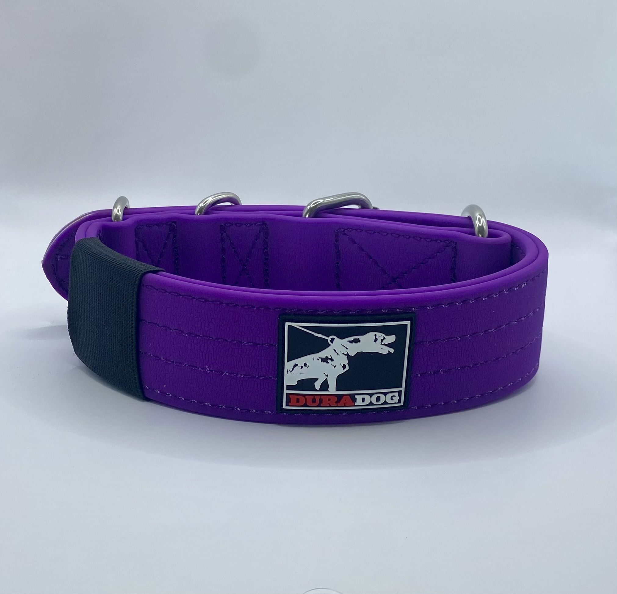 The new DuraDog waterproof collar is amongst the toughest dog collars ever made. Made to partner the new waterproof leash In purple. Possibly the most handsome waterproof dog collar on the market. Durable, trustworthy this collar will turn up day after day without the smell of traditional nylon collars.