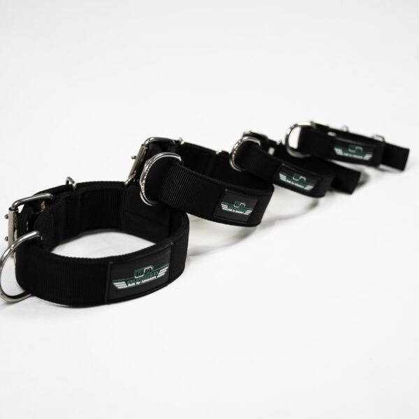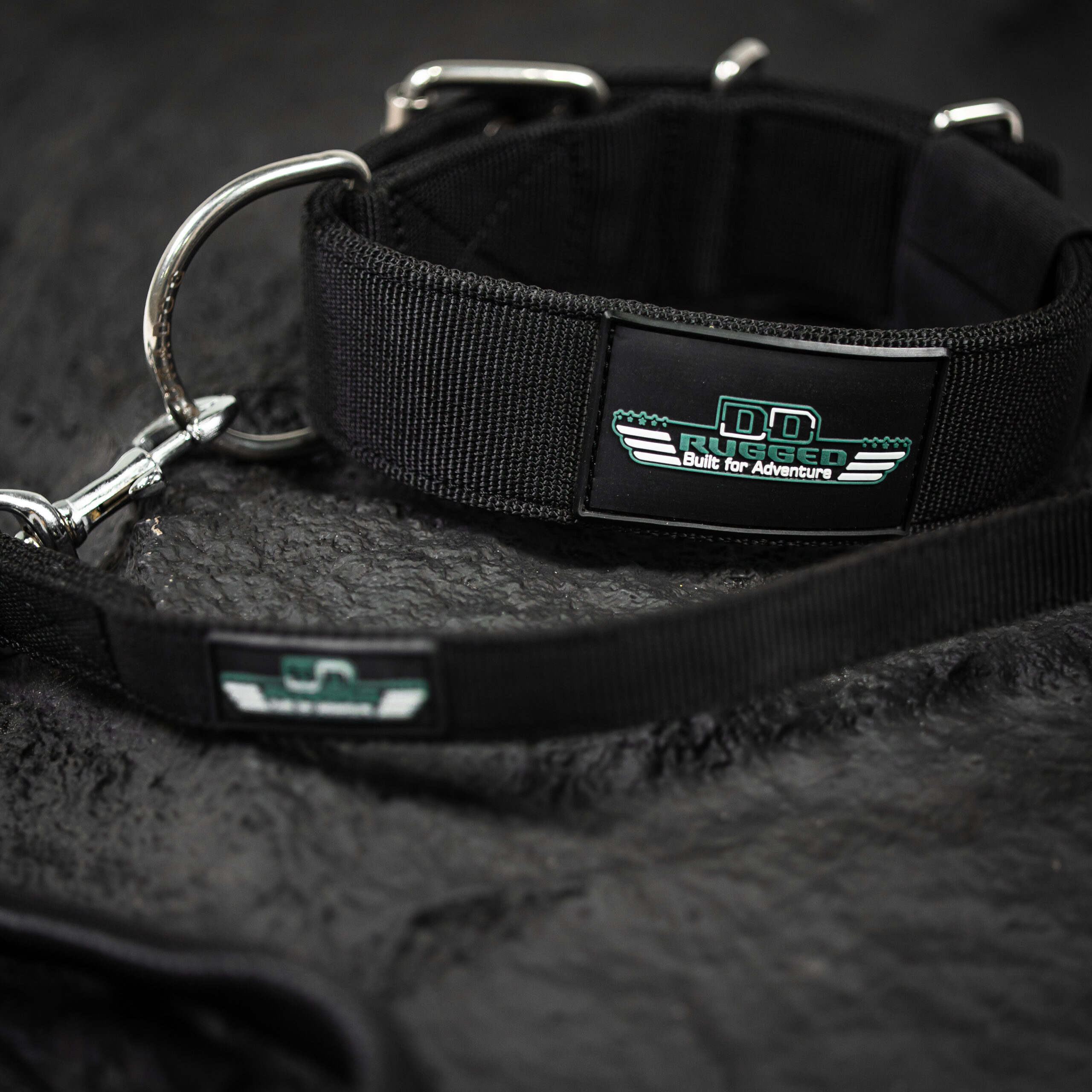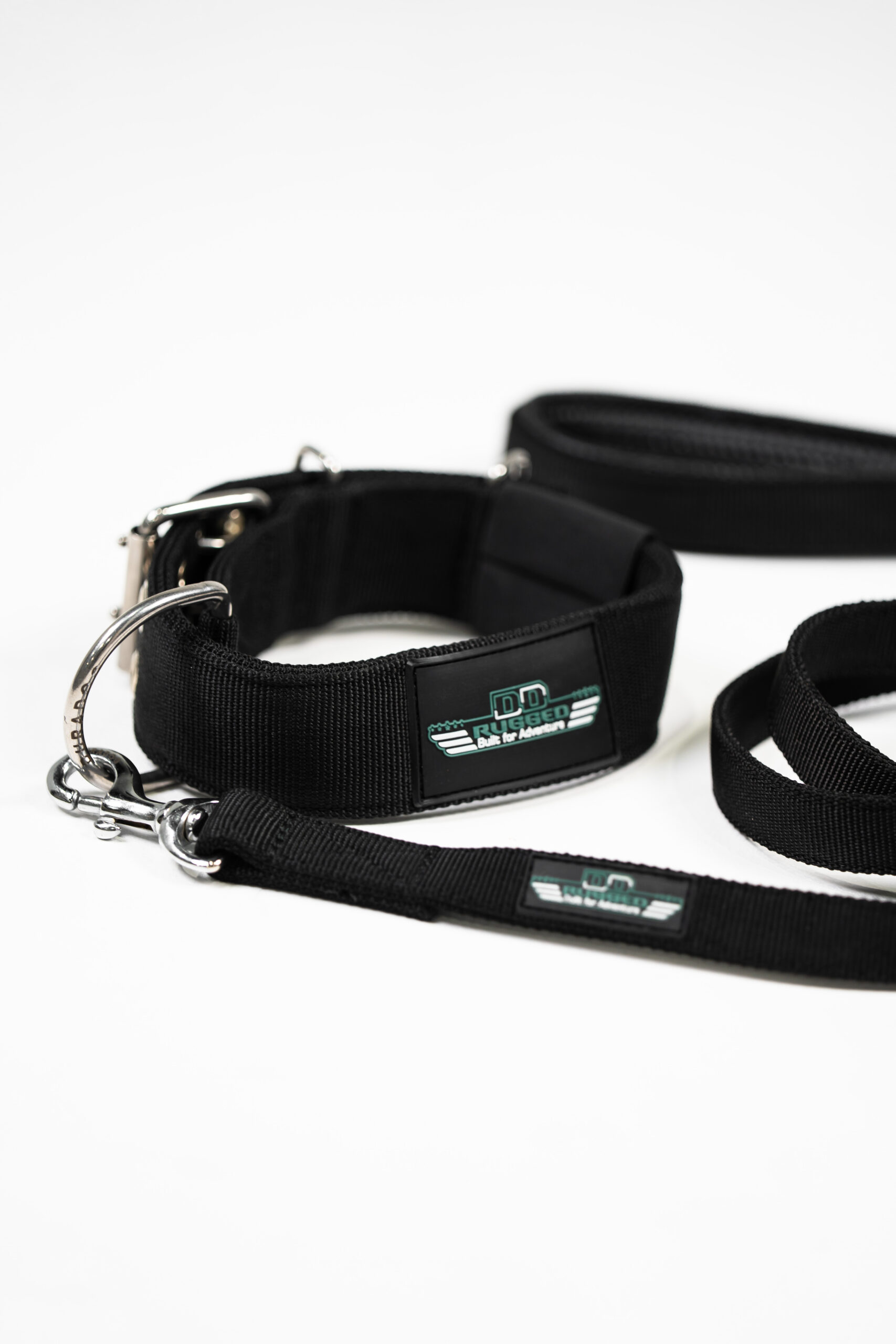 The Rugged collar and leash is designed for the dog that loves to adventure. Extremely heavy duty triple ply nylon webbing with double pin stainless steel fittings makes this collar the ultimate collar for all dogs. It also beats anything on the market for toughness and legendary durability which DuraDog has been known for. Whether your dog is the extreme sporting or hunting dog or the couch potato this is the perfect collar. 3ply military grade nylon makes this collar slimline and extremely comfortable. Collar keeper for any overhang with the Rugged logo this collar can lift tonnes of weight off the floor.